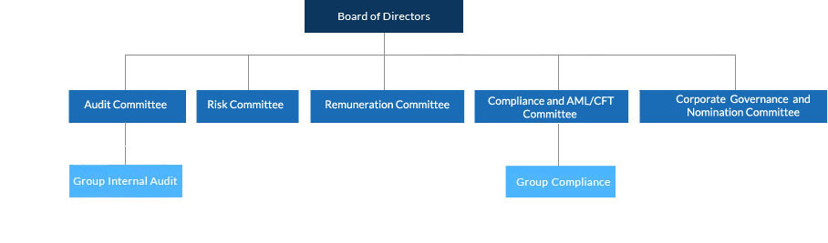 The Board Committees include the: Audit Committee, Risk Committee, Remuneration Committee, Compliance and Combatting Financial Crimes Committee, as well as the Corporate Governance and Nomination Committee.